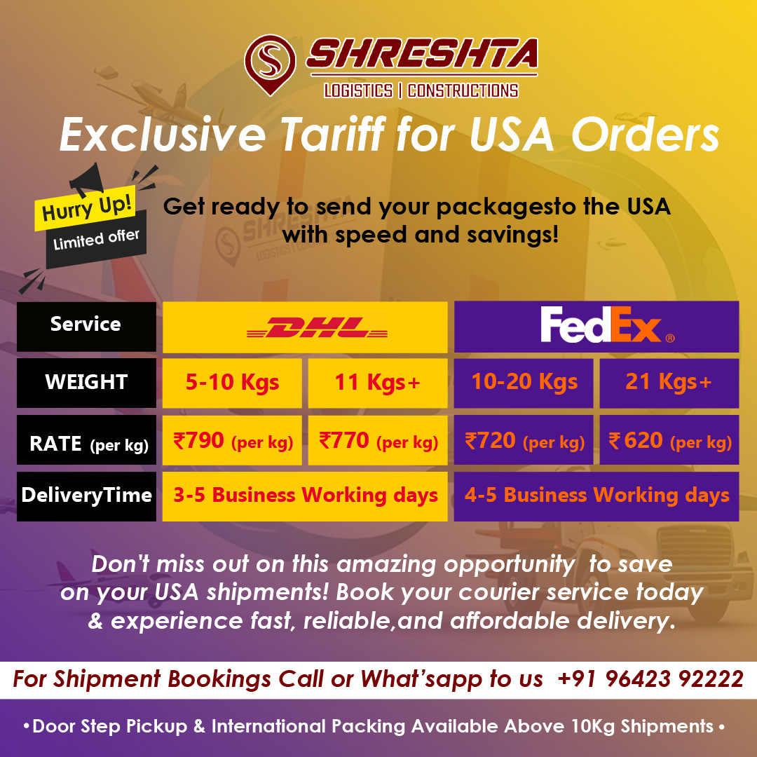 You need to know the estimated shipping charges before sending parcel please contact +91 9642392222.